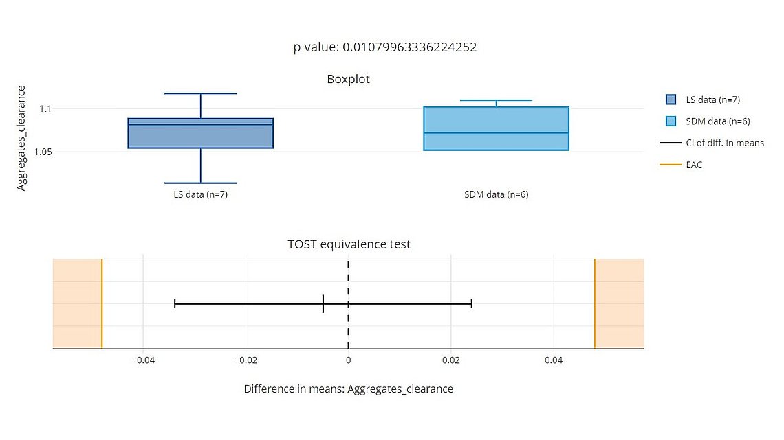 Hypothesis testing provides statistical guidelines for decision making. By that the error associated to a decision can be controlled or minimized. The questions asked are usually: is it reasonable to assume that the value of a population parameter is equal to, larger or less than a defined threshold? Such tests can be applied to compare the mean or variances of e.g. two manufacturing sites. These tests usually only assess the statistical significance of a result, but not the practical relevance. E.g. a difference in means of two groups might be statistically significant, but not practically relevant. Equivalence testing provides a simple solution that allows for testing the hypothesis for practical relevance (Limentani et al., 2005). Using e.g. a two-one sided t-test can provide insight whether there is a practically relevant difference between two manufacturing sites.