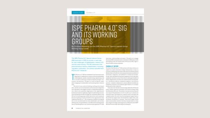 "By Christian Wölbeling and the ISPE Pharma 4.0™ Special Interest Group Working Group Leads The ISPE Pharma 4.0™ Special Interest Group (SIG) launched in 2015 to provide a road map for new challenges of digitalization, Industry 4.0, and the smart factory. The SIG addresses how pharmaceutical industry stakeholders, including regulatory authorities, can achieve benefits from Pharma 4.0™ initiatives. "