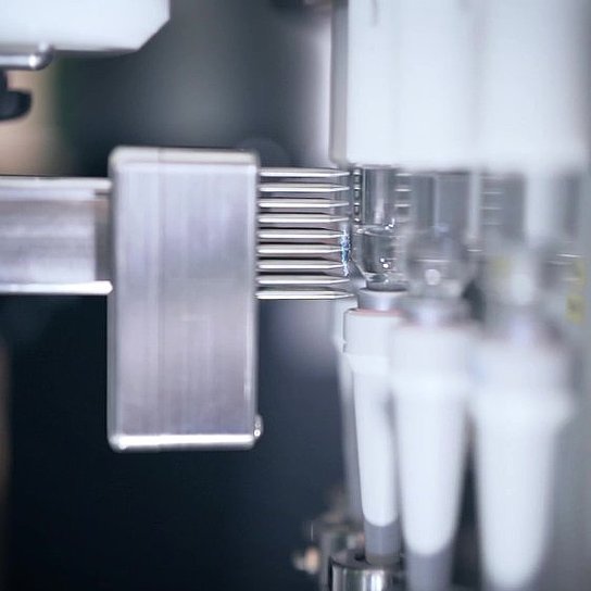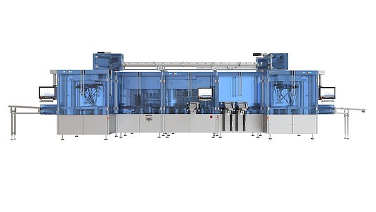 Maschinenmodul für die Dichtheitsprüfung von Ampullen mit zähflüssigem Inhalt und von Vials mit niedrigem Füllstand.