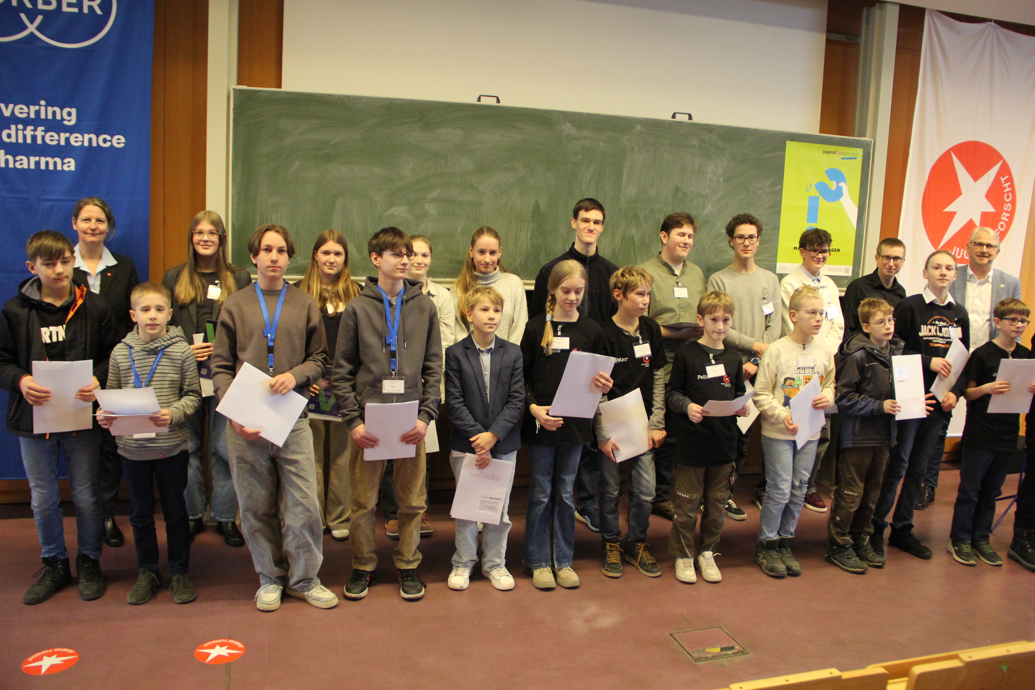 Am Vortag hatten 70 Nachwuchstalente ihre Projekte einer interdisziplinär besetzten Expertenjury vorgestellt. Die jungen Wissenschaftlerinnen und Wissenschaftler zeigten dabei eine große Bandbreite spannender Forschungsthemen: Ob „KI zur autonomen Erkennung von Wölfen“, „Die Mehlrevolution – Eichelmehl als Alternative zu Getreidemehl“, „Analyse der Dynamik von Raum und Energie beim Schwarzen Loch“ oder „Voraussage der Folgen von Sonnenstürmen mit Hilfe von KI“ – das sind nur einige der insgesamt 12 Projekte, die in ihrem jeweiligen Fachgebiet einen ersten Platz gewonnen haben. Die meisten Siegerarbeiten stammen dabei vom Gymnasium Athenaeum Stade (6 Arbeiten) und dem Gymnasium Oedeme (2 Arbeiten).