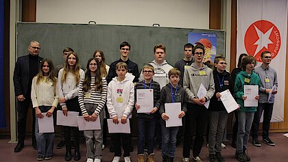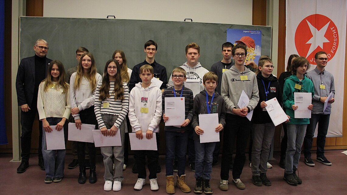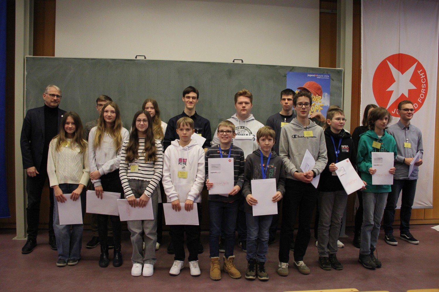 Am Vortag hatten 100 Nachwuchstalente ihre Projekte einer interdisziplinär besetzten Expertenjury vorgestellt. Die jungen Wissenschaftlerinnen und Wissenschaftler zeigten dabei eine große Bandbreite spannender Forschungsthemen: Ob „Können Wärmebildaufnahmen den Bienen beim Überwintern helfen?“, „Grau statt grün – was bedeuten Schottergärten für die Natur?“, „Die Mehlrevolution – Eichelmehl als Alternative zu Getreidemehl“ oder „KI zur autonomen Erkennung von Wölfen“ – das sind nur einige der insgesamt 12 Projekte, die in ihrem jeweiligen Fachgebiet einen ersten Platz gewonnen haben. Die meisten Siegerarbeiten stammen dabei vom Gymnasium Halepaghen-Schule in Buxtehude (3 Arbeiten) und dem Gymnasium Athenaeum Stade (2 Arbeiten).