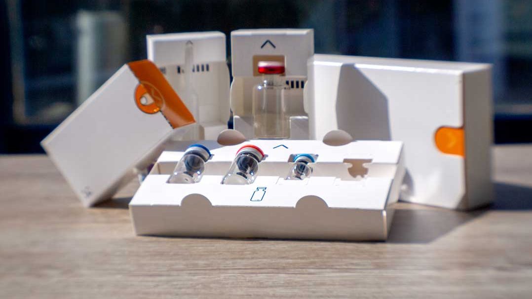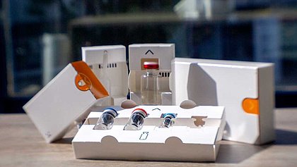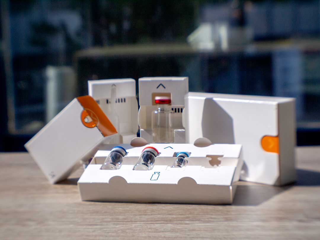 Die Produktentwicklerin Cecile Zimmermann und das Innovationsteam für Verpackungsmaterial aus dem Geschäftsfeld Pharma entwickelten daraufhin eine Sekundärverpackung, die aus zwei Einheiten besteht: einer Innen- und einer Außenschachtel. Dank flexibler Laschen in der Innenschachtel können unterschiedliche Produktgrößen in nur einer Verpackungslösung sicher verpackt werden. Die Produkte sind dabei unabhängig von ihrer Größe optimal fixiert und geschützt. Pharmahersteller können auf diese Weise die Vielzahl von Sekundärverpackungen auf ein Minimum reduzieren.