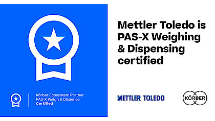 Im Kern der pharmazeutischen Herstellung liegt der kritische Prozess des genauen Wiegens und Abfüllens von Ausgangsmaterialien gemäß den Rezepturvorgaben. PAS-X Weighing & Dispensing leitet den Bediener zuverlässig an und und führt ihn einfach durch den Wägeprozess, während es Sicherheitsvorschriften und Rezeptanforderungen einhalten hilft. Die nahtlose Integration von Waagen ist für diese Fähigkeit unerlässlich - verstärkt durch die Partnerschaft von Körber mit METTLER TOLEDO, einem renommierten Anbieter von Präzisionswaagen.