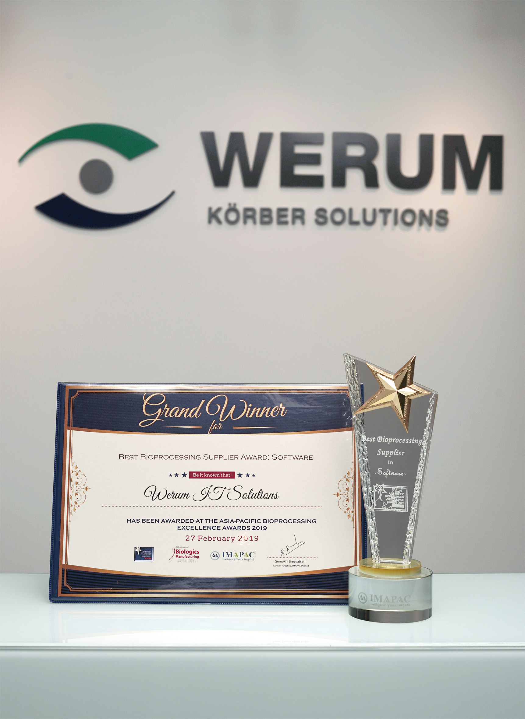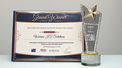 Lüneburg/Deutschland, Bangkok/Thailand, 11. März 2019 – Werum IT Solutions, der international führender Anbieter von Manufacturing Execution Systems (MES) für die Pharma- und Biotechindustrie, hat für sein Out-of-the-Box-Softwareprodukt PAS-X die Auszeichnung „Best Bioprocessing Supplier Award“ im Bereich Software erhalten. PAS-X ist eine standardisierte, flexible und leistungsfähige MES-Lösung, die durch die Mehrzahl der Top-30-Pharma- und Biotechunternehmen weltweit eingesetzt wird. Werum’s MES unterstützt Medikamentenhersteller dabei, ihre Produktivität zu steigern und die Compliance mit den regulatorischen Anforderungen sicherzustellen. Dabei deckt es alle wesentlichen Phasen des pharmazeutischen und biopharmazeutischen Herstellungszyklus ab.